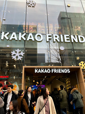 然後我地周圍都見到人地拎住KAKAO嘅氣球,因為譚心好想要,於是我地就搵下附近邊到有得派啦~原來係有間三層高嘅KAKAO FRIENDS係弘大,超級多人!